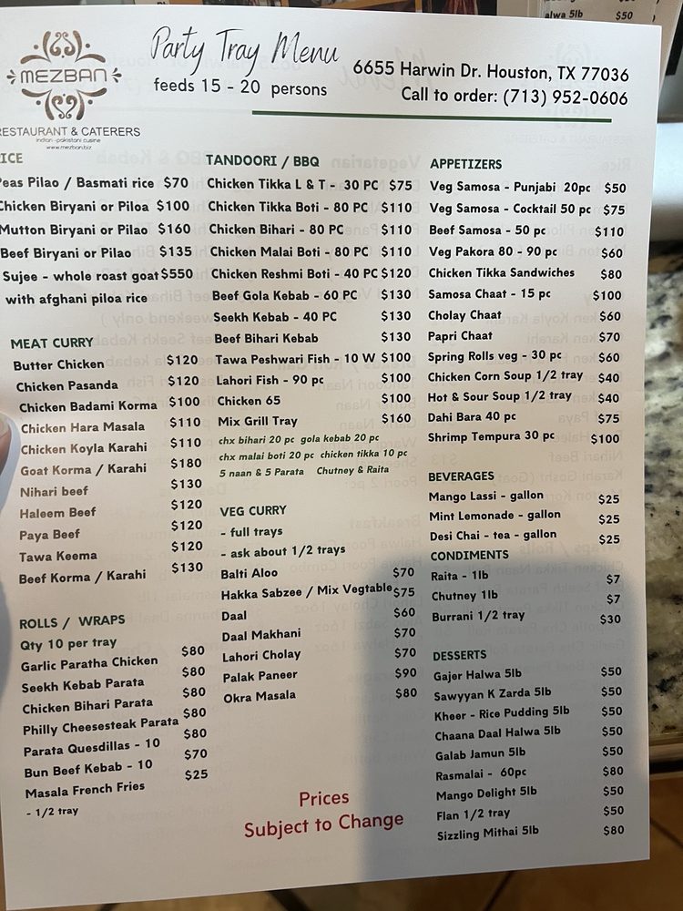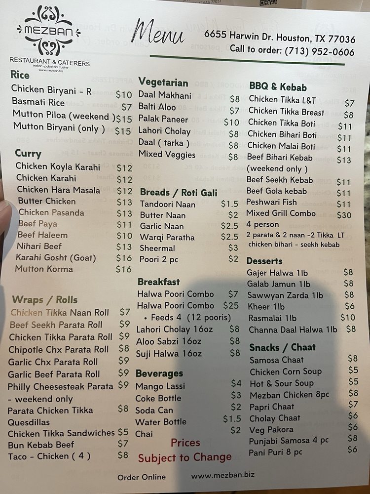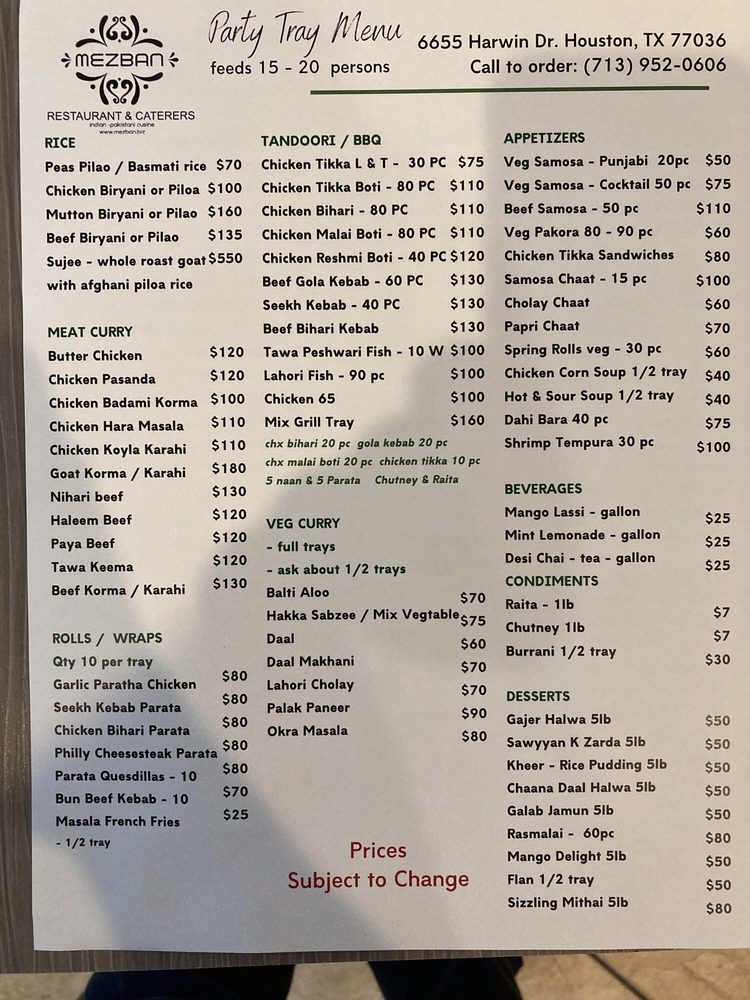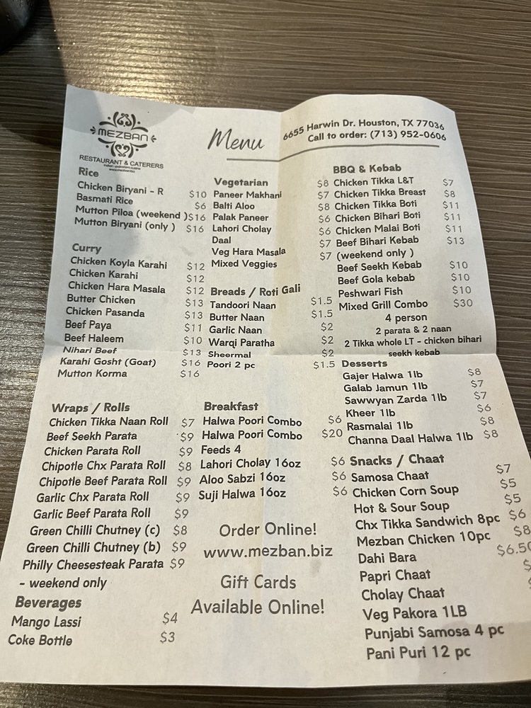 Mezban Menu